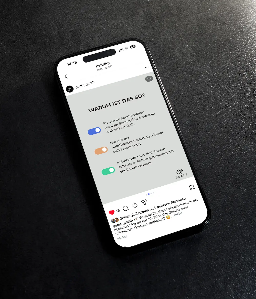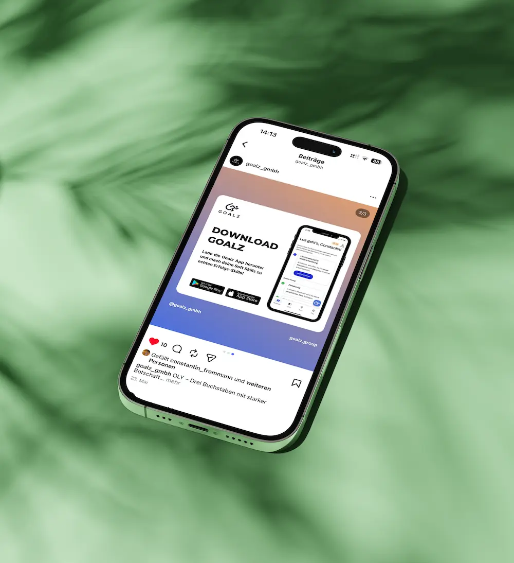 Für das Startup Goalz habe ich über 30 Instagram-Posts und Stories in verschiedenen Formaten gestaltet. Ziel war ein einheitlicher, moderner Auftritt – von der Gestaltung bis zur Veröffentlichung.